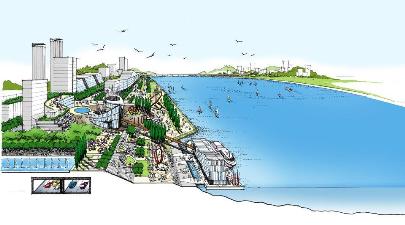 | ▲ 김진애 의원실이 발표한 친수구역 용역(안)의 관광레저복합도시 조감도. 여주 이포댐 주변의 모습이다. ⓒ김진애의원실 |