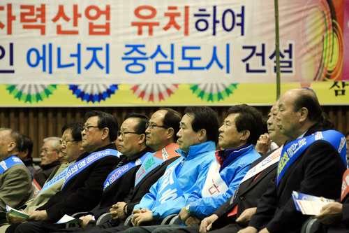 | ▲ 9일 강원 삼척시 체육관에서 '삼척시 원자력산업 유치 성공기원 범시민 한마음 결의대회'가 열렸다. ⓒ연합뉴스 |