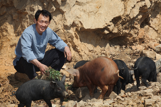 친환경 축산은 생각보다 간단합니다. 일단 규모를 확 줄이면 됩니다. 당장 우리 집만 해도 먹이를 손수 만들어 먹이니 사료값도, 분뇨 처리 비용도 들지 않아요. 항생제는 물론 주사 한 방 놓지 않아도 어느 돼지들보다 건강합니다."