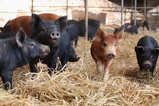그래서인지 김정호 씨의 농장은 지붕만 있고 벽을 없앤 개방형 축사로 조성돼 있었다. 바닥은 딱딱한 시멘트 대신 흙 위에 푹신한 볏짚을 깔았다. 땅을 파는 습성이 있는 돼지들을 배려한 것이다. 돼지들이 볏짚 위에서 대소변을 보니, 따로 분뇨 처리 비용도 들지 않는다.