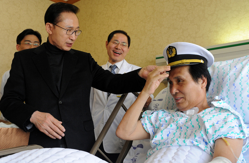 | ▲ 석해균 선장을 위로 방문한 이명박 대통령. ⓒ연합뉴스 |