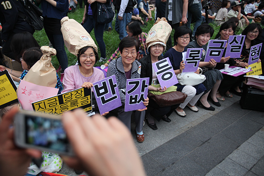청계광장 소라탑 옆에 설치된 무대에서는 정치인, 시민단체 대표들이 "반값 등록금이 실현돼야 한다"는 취지의 발언을 이어갔다. 하지만 무대에서 멀리 떨어진 촛불 시민들은 이러한 발언에 관심을 갖기 보다는 자신들이 노는 것에 더 집중하는 눈치였다.