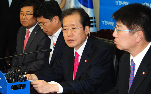 | ▲ 서울시의 주민투표 결과가 발표된 24일 오후 8시, 홍준표 대표는 "사실상 오세훈 시장의 승리"라고 자평했다. 그러나 이는 홍 대표의 '희망사항'에 가깝다. 당장 '서울시장 사퇴'의 직격탄을 맞은 한나라당은 내년 총선과 대선의 향배를 가를 오 시장의 사퇴 시기를 놓고 고심하고 있다. ⓒ뉴시스 |