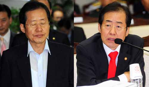 | ▲ '확' 바뀐 홍준표 대표. 지난 8일 언론사 카메라에 노출된 그의 얼굴엔 눈썹이 거의 없지만(왼쪽), 19일 그의 눈썹은 몰라보게 진해졌다. ⓒ뉴시스 |
