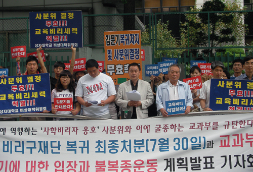 정 위원장은 "상지대 교수들은 1990년대 초반, 김문기 구재단과 싸우는 과정에서 20명에 가까운 교수들이 재임용에서 탈락했다"며 "물론 이후 대부분 복귀가 됐지만 재임용권한과 관련해서 교수들은 일종의 '트라우마'가 있다"고 설명했다.