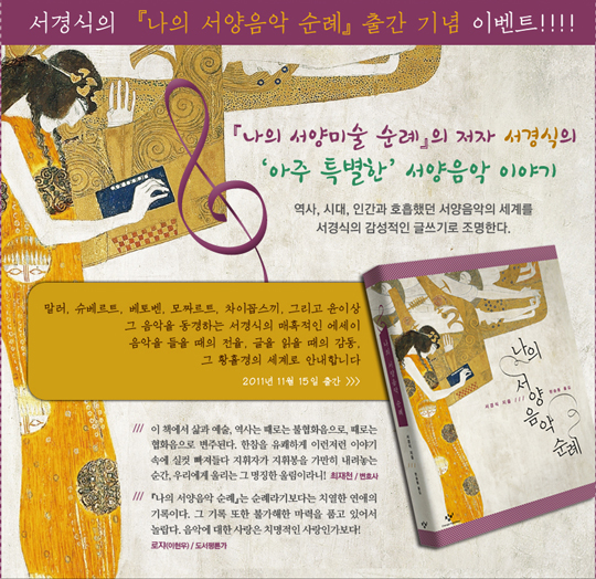 출간을 기념해 마련된 영상 강연회에서는 오페레타 《박쥐》 일부를 3가지 다른 버전으로 감상한 후 시인이자 음악평론가인 김갑수 씨의 사회로 서경식 선생과 함께 서양음악의 세계에 대해 대화를 나누는 특별한 경험을 할 수 있습니다. 독자 여러분의 많은 참여 바랍니다.