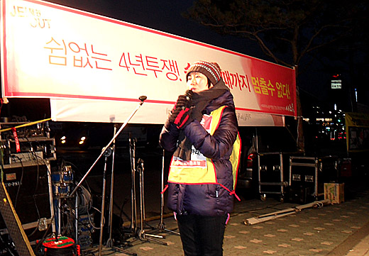 이어 유 지부장은 "4년 전 12월 20일 싸움을 시작했다"며 "이제 와서 포기할 수 없다. 우리가 노조를 처음 만든 마음을 잊지 않았다"고 덧붙였다.
