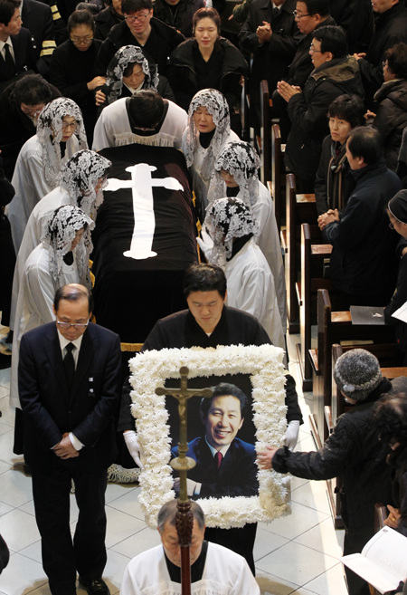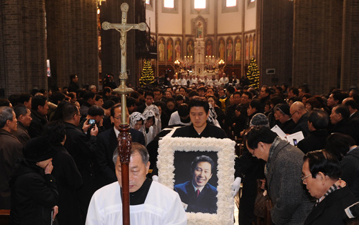| ▲ 지난달 30일 세상을 떠난 故 김근태 상임고문의 영결식이 3일 오전 서울 명동성당에서 '민주사회장'으로 엄수됐다. ⓒ뉴시스 |