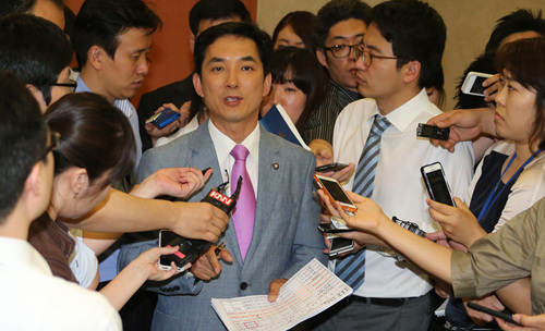 | ▲ 당원명부 유출사건의 대책팀장을 맡고 있는 새누리당 박민식 의원이 21일 기자들의 질문에 답하고 있다. ⓒ연합뉴스 |