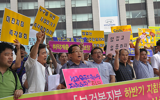 이들은 "국민기초생활보장법 시행령을 보면 수급자에게 공익성이 높은 사업이나 지역주민의 복지향상을 위해 필요한 사업 등에서 유급으로 근로할 수 있는 기회를 제공하는 것으로 규정하고 있다"며 "하지만 보건복지부는 자활사업지침을 통해 자활근로사업에 시장화를 통한 수익성 중대만을 요구하고 있다"고 비판했다.