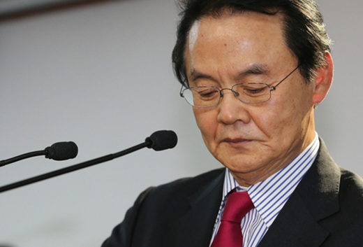 ▲ 박근혜 후보 경선 캠프의 공동선대위원장을 지낸 홍사덕 전 의원이 17일 오후 여의도 당사에서 4·11 총선 직전 수천만 원의 불법 정치자금을 수수한 혐의로 선관위로부터 고발당한 것과 관련해 심각한 표정으로 기자회견을 하고 있다. ⓒ연합뉴스