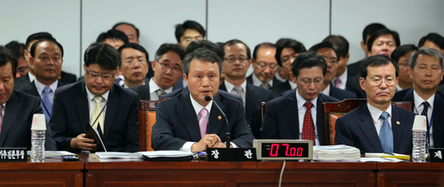 | ▲ 국토해양부 권도엽 장관이 5일 과천 청사에서 열린 국회 국토해양위원회 국정감사에서 의원의 질의에 답하고 있다. ⓒ연합뉴스 |