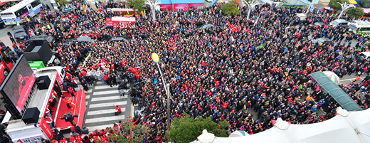 | ▲ 30일 부산 진구 부전시장에서 열린 박근혜 새누리당 대선 후보의 유세를 보기 위해 수많은 인파가 모여들었다. ⓒ뉴시스 |