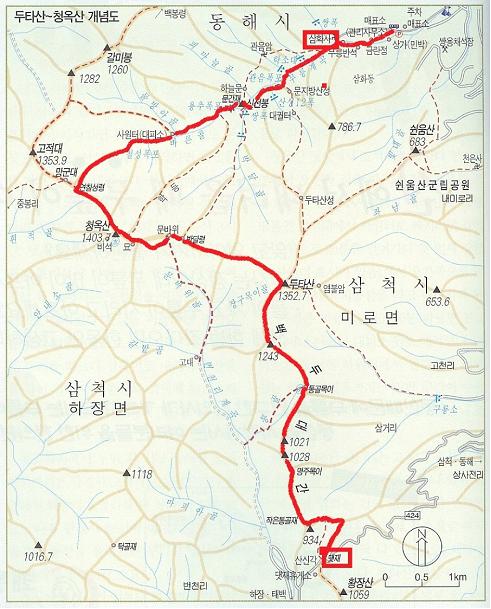 <산행지도 : 두타산-청옥산-무릉계곡 구간>