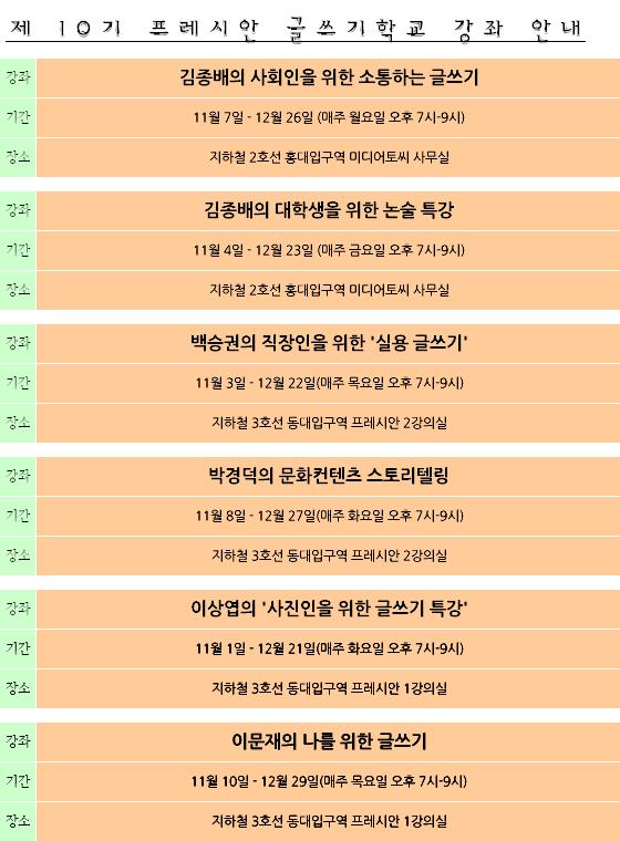 11월 10일부터 12월 29일까지 매주 목요일 오후 7-9시(주 1회 8강)