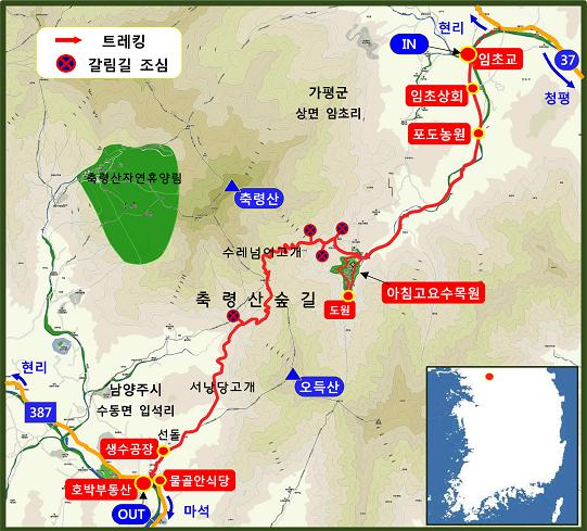 [준비물]걷기 편한 차림(등산복/배낭/등산화), 스틱, 무릎보호대, 식수, 윈드자켓, 우비, 따뜻한 여벌옷, 간식, 과일, 자외선 차단제, 헤드랜턴, 필기도구 등(기본상비약은 준비됨).