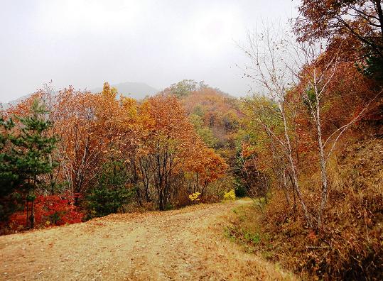 아름다운 아침고요수목원길을 한 시간 정도 일주하며 감상한 후, 우리는 축령산 속으로 빠져 들어갑니다. 축령산은 온통 울창한 원시림으로, 여기서 뿜어내는 산뜻한 기운은 우리의 지친 몸과 마음을 일거에 씻어내 줍니다. 이날 걷는 길은 축령산 아랫자락에 난, 잘 보존된 임도로 걷기에 아주 편한 길입니다.