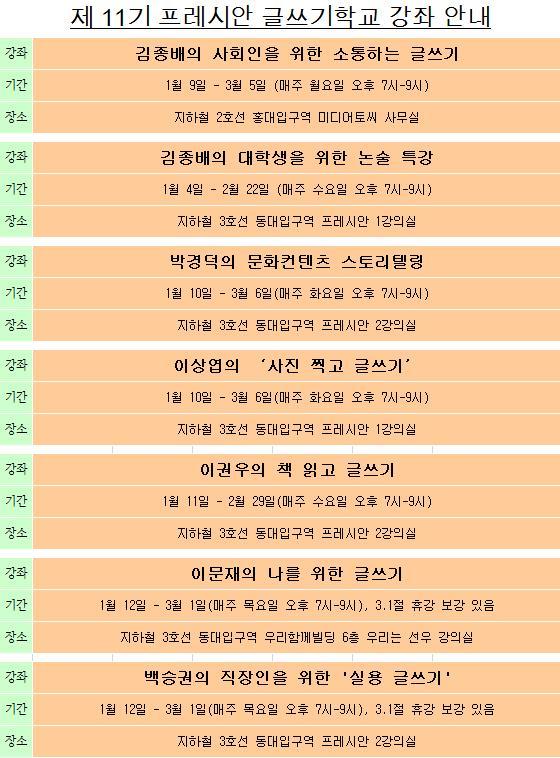 '제11기 프레시안 글쓰기학교' 는 다음과 같이 준비되었습니다.