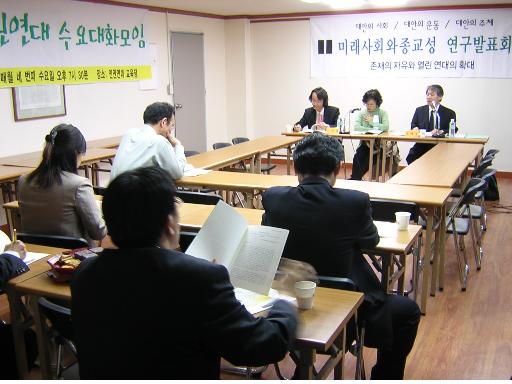 이형용 미래사회와종교성연구원 상임이사는 "연구발표회는 종교성의 새로운 지평에서 '대안의 사회, 대안의 운동, 대안의 주체'의 길을 긴 호흡으로 찾고 만들어가기 위해 '탈근대, 탈포스트모던 대안 사회, 대안 사상'이란 큰 주제 아래 최소 30회 연속기획으로 한바탕 활달한 대안 모색의 장을 펼치고자 마련한 자리"라며 "이를 바탕으로 그저 남의 아이디어를 내다파는 수입지식 매장이 아니라, '자신의 현실을, 자신의 언어로, 자신의 머리로' 고민하고 나누는 역사현장이기를 소망한다"고 밝혔다.