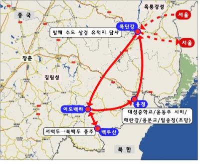 백두산 트레킹 일정은 편리한 대한항공편을 이용하며 3박4일간 진행됩니다. 이번 백두산 길은 특별히, 꼭 가보면 좋을 유적 답사로부터 시작합니다. 인천국제공항에서 바로 중국 흑룡강성 목단강(牡丹江)국제공항에 도착, 발해(渤海)의 수도였던 상경(上京)의 옛 왕궁터 등 감개 어린 발해 유적들을 답사합니다.