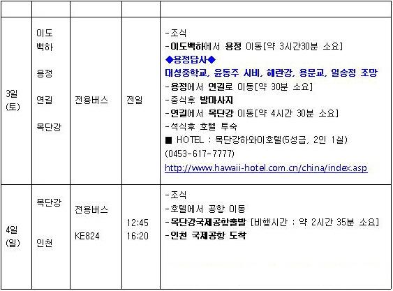 백두산 트레킹 3박4일의 상세한 일정은 다음과 같습니다.