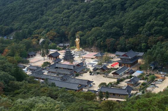 ▶법주사 : 이 사원의 불교 건축공간 조영은 여러 관점으로 관찰될 필요가 있다. 찾아올 적마다 그 진면목을 달리 아로새겨보곤 한다. 팔상전을 비롯한 3기의 국보와 마애여래의상(倚像) 등의 보물 및 기념물들은 내방자들로 하여금 이미 법신부처 상주처의 경건과 화평을 누려보게 한다. 하지만 그러한 순례가 모두에게 한갓진 것일 수는 없겠다. 속리산 지킴이의 역할과 구실을 도맡아야 하는 데에서 경내의 환경에도 변화가 일어나고 있는데 국가명승지역의 공간 기호학을 더욱 새롭게 해야 하리라.
