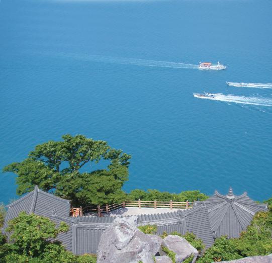 해마다 새해 첫 일출의 장엄을 보기 위해 사람들이 구름처럼 몰려드는 도량. 향일암은 대한불교 조계종 제19교구본사 화엄사 말사입니다. 다리로 연결되어 이미 뭍이 된 여수 돌산도 금오산 자락에 있습니다. 향일암은 가파른 절벽 위에 서 있고 그 아래는 가없는 바다가 펼처져 있습니다. 암자는 고통의 바다를 건네주는 자비의 배[苦海慈舟]입니다. 그 바다의 섬들 또한 그저 있는 것이 아닙니다. 중생의 간절한 염원을 담고 떠 있습니다. 향일암 왼쪽 바다에는 중생(衆生)의 서원(誓願)에 해수관음보살이 감응했다는 감응도, 정면에는 부처가 머물렀다는 세존도, 오른쪽 바다에는 아미타불이 나투었다는 미타도가 있습니다.