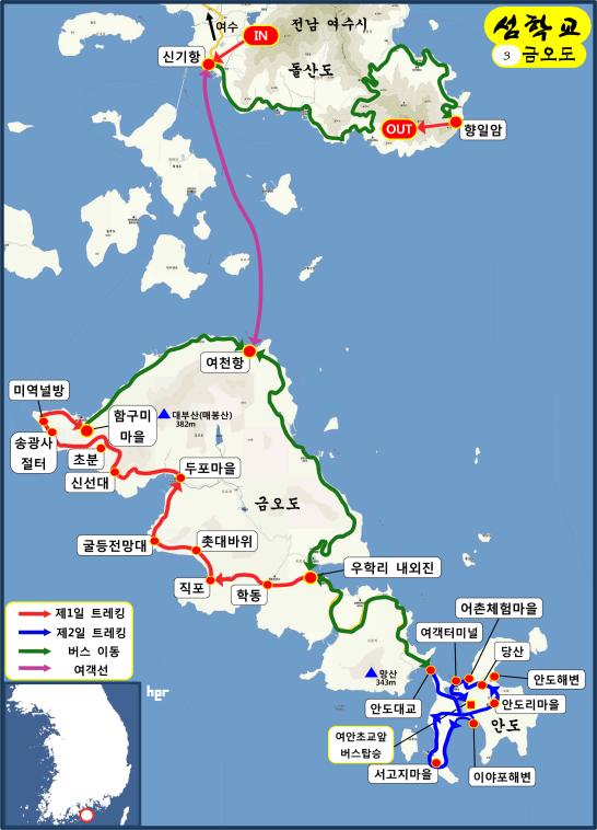섬학교 제3강 여수 <금오도>와 <향일암> 일정은 다음과 같습니다.