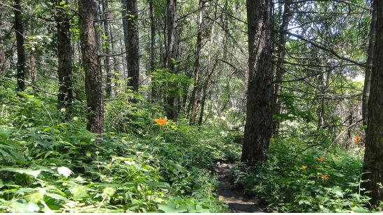한참을 걷다보면 드넓은 자연초지에 들꽃 군락지로 유명한 분주령에 이릅니다. 잠시 휴식을 취한 후 대덕산(1,307m)에 오릅니다. (잠깐! 여기서 수월한 코스를 원하시는 분은 분주령에서 바로 검룡소로 내려가는 지름길을 택할 수 있습니다.) 대덕산은 금대봉에서 북으로 뻗어가는 첫머리에 자리잡은 육산입니다. 오르는 동안 땀을 좀 흘리려 하면 들꽃 군락지들이 나타나고 이를 감상하다보면 힘들 겨를이 없습니다.