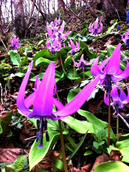 부드러운 능선을 따라 울창한 숲을 지나다 보면 사이사이에 자연초지가 아름다운 들꽃 군락을 연출하고 있습니다. 온갖 봄의 들꽃들이 화려한 자태를 뽐냅니다.