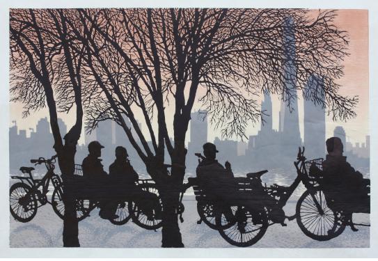 남한강 지류인 동강으로부터 단양, 양수리, 서울, 강화도를 아우르는 공간이 이번 전시에서 선보이는 한강의 모습입니다. 그동안 김 화백이 지속적으로 구사해 온 꼼꼼한 재현적 판각법과, 다양한 시점(視點), 끌칼로 대범하게 목판면을 드러내는 표현성, 오랜만에 시도하는 다색판법에 이르기까지, 한강이란 테마에 구사할 여러가지 목판화 기법도 선보입니다.