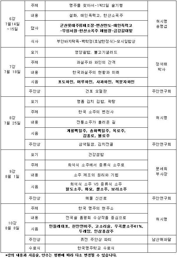 *강의 내용과 시음술, 안주는 형편에 따라 다소 변경될 수 있습니다.