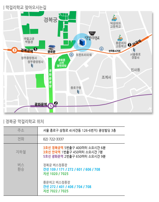 ○ 장 소 : 서울시 종로구 삼청로 4(사간동 126-6번지) 3층 막걸리학교