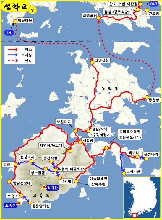 06:10 서울 출발(6시까지 서울 강남구 지하철 3호선 압구정역 6번 출구의 현대백화점 옆 공영주차장에서 <섬학교> 버스 탑승바랍니다. 김밥과 식수가 준비돼 있습니다. 답사일정은 현지 사정에 따라 일부 조정될 수 있습니다.)