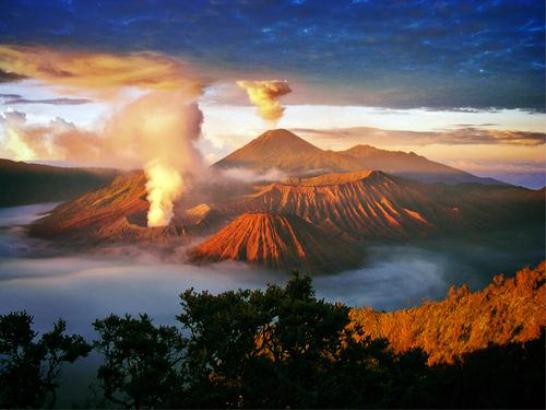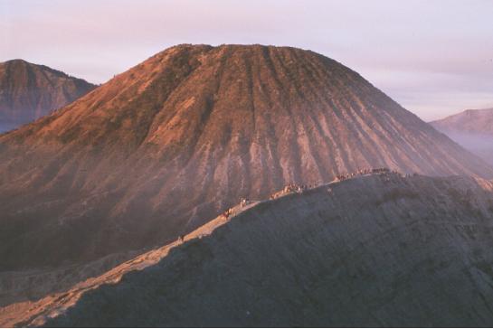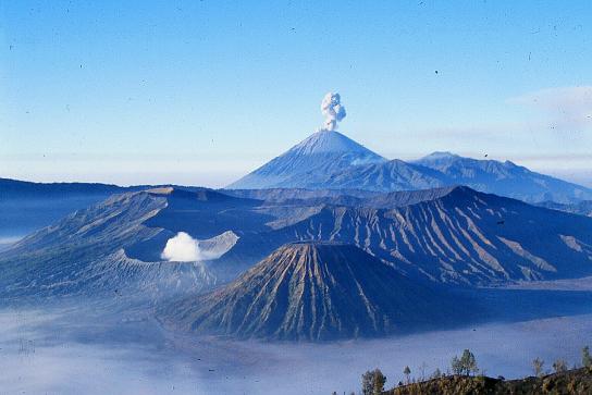 브로모는 화산 중의 화산. 아름다움 빛의 조화, 새벽녘 밀려오는 젖빛의 가스와 옅은 안개, 붉었다 점차 옅어지는 햇살에 5형제 같이 얼키설키 한자리에 모여 앉은 모습, 그중 압권은 40분에 한 번씩 하늘로 뿜어대는 세메루의 분출이다. 그 광경을 보러 자리잡고 서성이다 보면 하늘을 향해 대포 같은 폭음과 함께 한 뭉치의 분출물을 지구 밖으로 던져버린다. 그리고 길게 꼬리치며 사라지는 잿빛 구름...