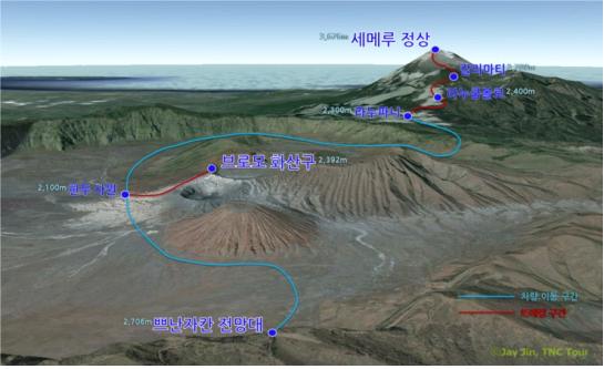 *트레킹 구간 : 브로모 ~ 라운파니까지 짚차 이동 후 라운파니 ~ 라운 쿰블로 호수 트레킹