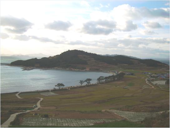 | ▲ 서편제길 언덕에서 바라본 도락리 마을과 바다 풍경 ⓒ섬학교 |