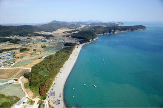 [용길] 장기미 해안은 몽돌로 이루어진 해안으로 그 옆으로는 계곡물과 해수가 공존하는 특이한 풍경을 볼 수 있음. 청산의 곡창지대로 불리는 청계리와 원동리는 구들장 논(구들을 깔듯 논바닥에 돌을 깔고 그 위에 흙을 쌓아 만든 논)이 펼쳐진 곳으로, 어족자원은 풍부했으나 쌀이 귀했던 시절 한 줌 흙마저 아껴 농사를 지어야 했던 섬사람들의 생존방식을 느낄 수 있다.