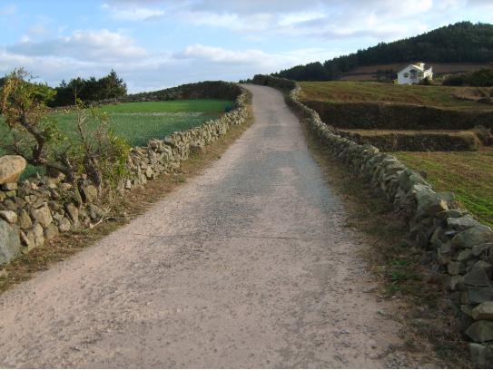 [동구정길] 도청항에서부터 <서편제>와 <봄의 왈츠> 촬영장까지의 길은 청산도의 상징 같은 길이다. 자연석으로 쌓아 만든 담장과 함께 4월에는 유채꽃과 청보리가 어우러진 그림 같은 풍경을 연출한다. 특히, 영화 <서편제>에서 '진도아리랑' 장면을 촬영한 길로 유명하다.