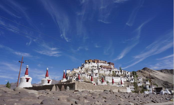 | ▲ 맑은 하늘에 성을 연상하듯 지어진 딕세 곰파는 라다크의 상징이다. Ⓒ히말라야캠프 |