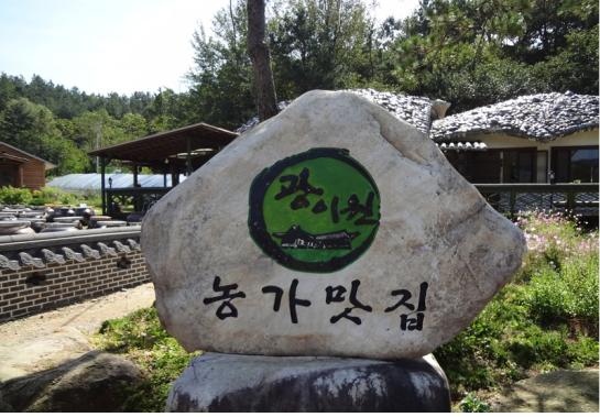 <수진원>에서 10여 분 떨어진 곳에 <광이원>이 있습니다. <광이원>도 장을 만든 지 20여 년이 넘는 곳으로, 2년 숙성된 전통 장을 기본으로 '농가맛집'을 운영하고 있는 곳입니다. <광이원>에서는 된장, 간장을 이용한 요리비법을 배우고 뽁작장정식으로 점심식사를 합니다. 자연숙성 전통 장으로 만든 뽁작장과 제철 반찬으로 맛있게 즐기는 농가형 전통식사 한상차림입니다.
