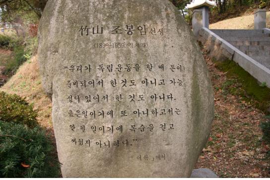 | ▲ 망우리공원 안의 죽산 조봉암 묘비 ⓒ서울학교 |