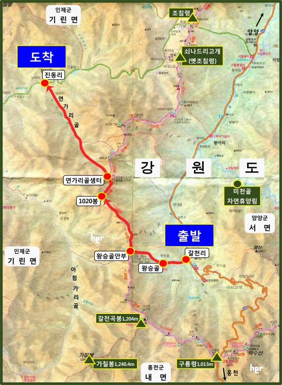 -산행코스 : 갈천리→왕승골→왕승골 안부→1020봉→연가리골 샘터→연가리골→진동리