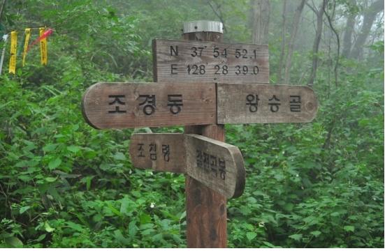 구룡령 옛길을 한 켠에 두고 왕승골을 지나 백두대간 능선을 오릅니다. 능선에 올라 좌측의 갈전곡봉(1,204m)을 뒤로 하고 대간길을 걷습니다. 대간길 우측은 급경사를 이루고 있고 좌측은 완만하게 이어져 있습니다. 동고서저. 한반도의 대표적인 지형입니다.