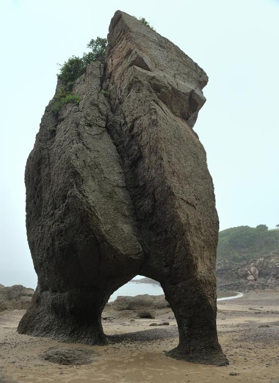 여름철이면 바다 속의 골짜기에는 주변보다 찬 물이 흘러들어오는 통로가 됩니다. 찬 바닷물이 여름철의 더운 공기와 만나 짙은 안개를 발생시킵니다. 여름이면 이 바다에 짙은 안개가 자주 끼어 뱃길이 끊기곤 하는 것도 그 때문입니다. 이 안개의 염분이 바위에 스며들어 터널을 파낸 것이지요. 바위를 녹일 정도로 염분의 힘은 강합니다.