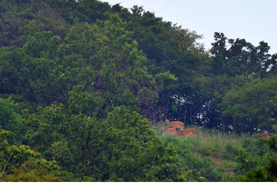 | ▲ 전 이장 집에서 탈출해 번성한 굴업도 꽃사슴떼 Ⓒ박휘섭 |