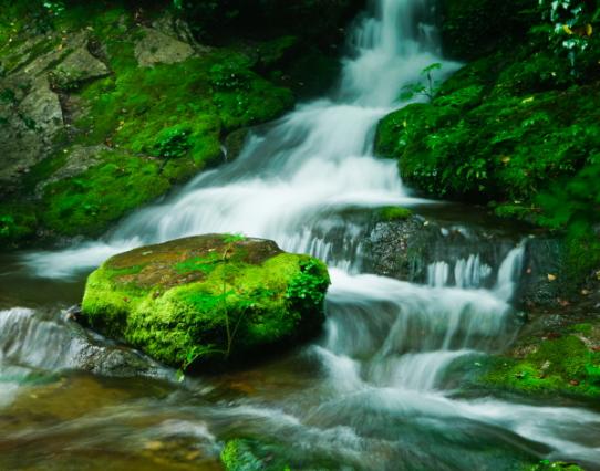 검룡소에서 쏟아지는 검룡소의 물은 사계절 9℃ 정도이며 주위의 암반에는 물이끼가 푸르게 자라고 있어 신비한 모습을 하고 있다.