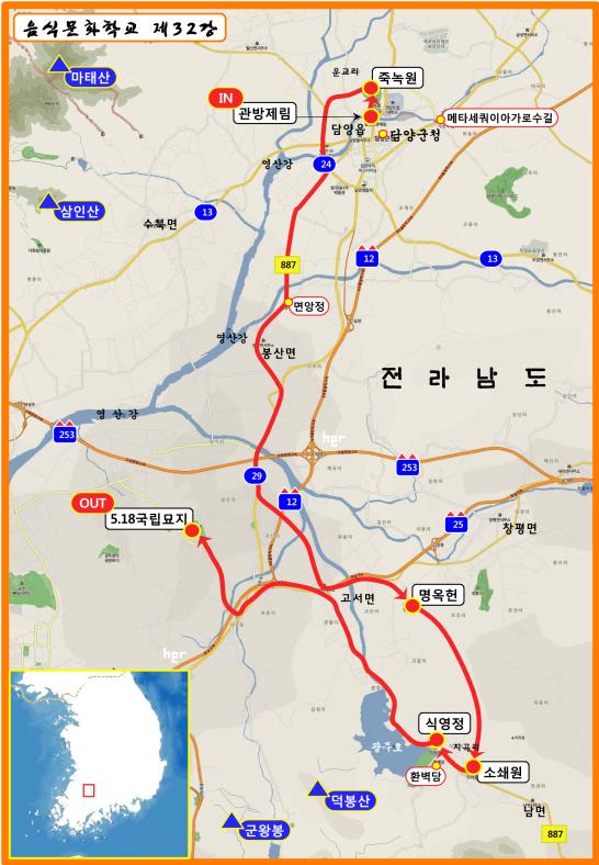 좀 서둘러 아침 6시 40분까지 압구정동 현대백화점 옆 공영주차장으로 오시어, 담양으로 떠나는 <음식문화학교> 스쿨버스에 탑승하시기 바랍니다. 김밥과 식수가 준비되어 있습니다. 험한 산길을 오를 일은 없습니다. 그냥 트레킹화 등 걷기 편한 신발과 햇볕을 가리기 위한 모자, 여름 날씨에 적합한 시원한 복장으로 오시기 바랍니다.