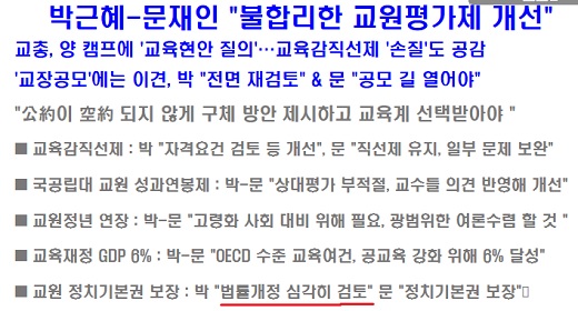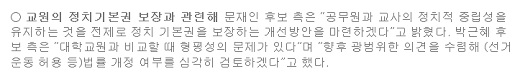 공무원인 교원의 정치 기본권 보장을 위해 선거 운동 참여 허용 등을 추진해나가겠다는 것을 공약으로 내놓은 셈이다.