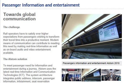 | ▲ 세계 최고 수준의 철도 회사인 프랑스 알스톰의 홈페이지. 각종 최신 철도 서비스 상품에 대한 설명으로 가득차 있다. |